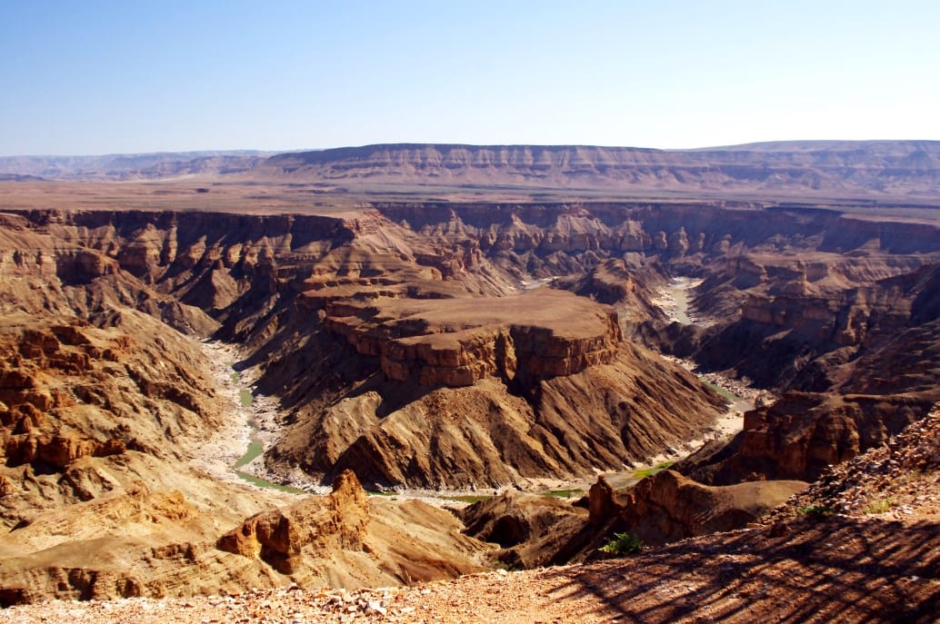 Trekking poles assist on steep descents such as those along the Fish River Canyon, reducing fatigue and impact on joints.