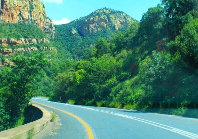 Travellers frequently pause at viewpoints to absorb sweeping panoramas that stretch across forested valleys towards citrus farms and game reserves.