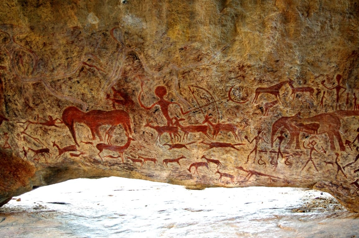 Further east, the Drakensberg Mountains rise like a fortress above the grasslands of KwaZulu-Natal and Lesotho. Here, ancient San rock art adorns cave walls. The paintings, some over two thousand years old, show elands, hunters, and trance dances. These were not decorative. They were expressions of belief, bound to the land and the spirits that dwell within it.